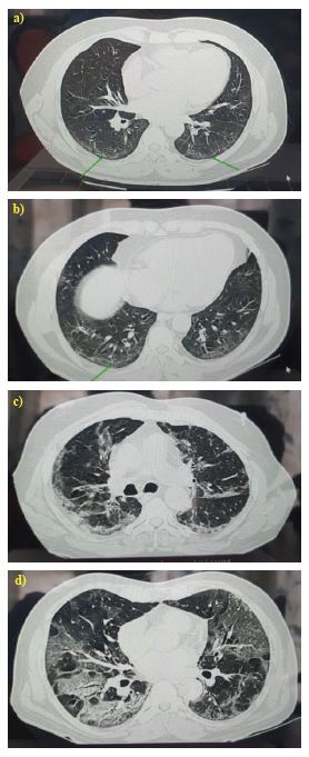 This highly infectious viral disease has an incubation period ranging from two and fourteen days. Although reverse transcription polymerase chain reaction (RT-PCR) remains the gold standard for COVID-19 detection, its diagnostic utility is constrained by the time required for sample transport and material preparation, leading to significantly delayed results.5 The severity of COVID-19 also varies widely, ranging from asymptomatic infection to critical illness requiring intensive care unit (ICU) admission and mechanical ventilation. Several clinical parameters, including age, comorbidities (such as hypertension, diabetes mellitus, and obesity), and laboratory findings (such as lymphopenia, elevated inflammatory markers, and abnormal coagulation profiles), have been identified as predictors of disease severity and adverse outcomes.6 However, the role of radiological imaging in assessing disease severity and predicting clinical outcomes in COVID-19 remains an area of active investigation. Chest computed tomography (CT) is a quick, readily available imaging modality that can support the diagnosis of COVID-19, particularly in settings where laboratory resources are overwhelmed.7